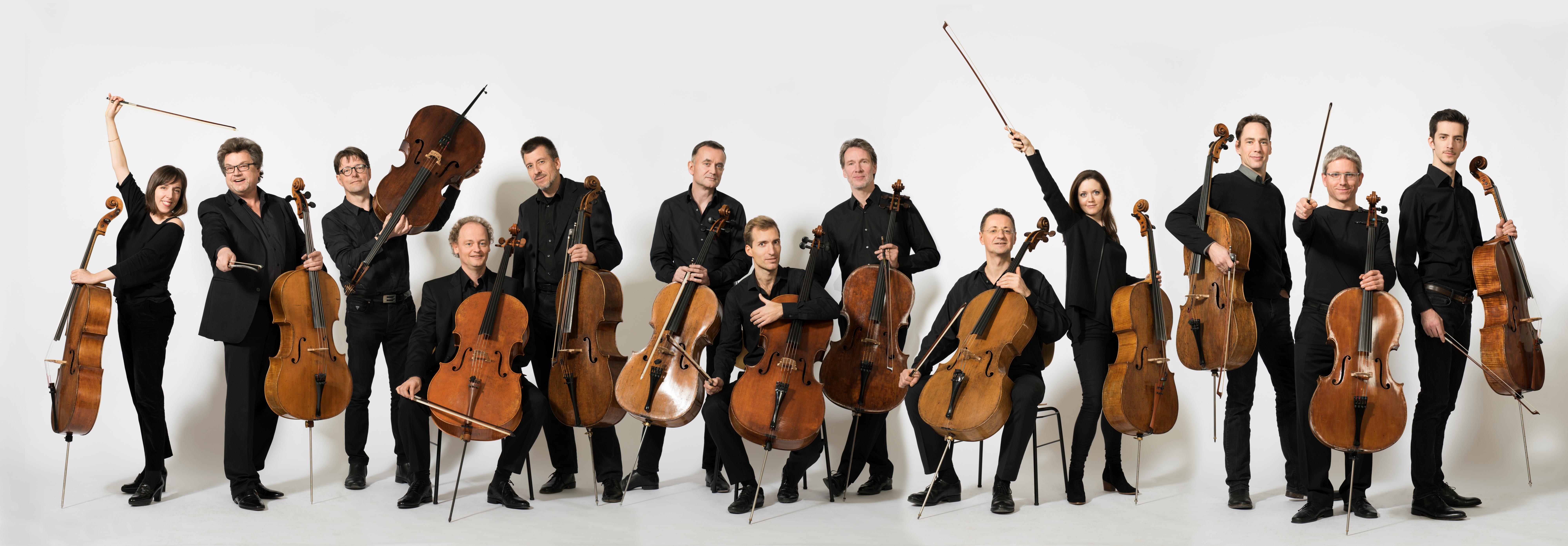 来自柏林爱乐乐团的十二位大提琴家,这个组合在国际音乐界中一直以来都有着显赫的地位。1972 年,在广播节目制作中,柏林爱乐的十二位大提琴家录制了克伦格尔的作品《赞美诗》——这成为了这一组合成立的原动力,他们卓越的音色和精湛的技艺很快征服了全世界的音乐听众。如今,“十二位大提琴家”在国际上已经享有极高的声誉。无论是演奏经典、爵士、探戈还是先锋音乐,听众无一不被这十二把大提琴演奏出的独特而令人陶醉的音色所吸引,他们的演奏既严肃又幽默,既深沉又轻快,吸引着各个年龄段的听众。曾为“十二把大提琴”专门谱写作品的当代作曲家包括:鲍里斯·布拉赫尔、塞巴斯蒂安·柯里尔、布雷特·迪恩、谭盾、佩特·埃特沃斯、让·弗朗赛、索菲亚·古拜尔杜丽娜、克里斯蒂安·约斯特、威尔赫姆·凯撒-林德曼、阿尔沃·帕尔特、沃尔夫冈·里姆、凯亚·萨莉亚霍、弗朗西斯·阿里·萨德、皮特里斯·瓦克斯、扬尼斯·谢纳基斯和乌多·齐默尔曼。他们还曾作为柏林大使陪同德国总统出访。他们的 CD 常常登上各大榜单,并分别于2001年、2005年和2017年获得古典回声奖。