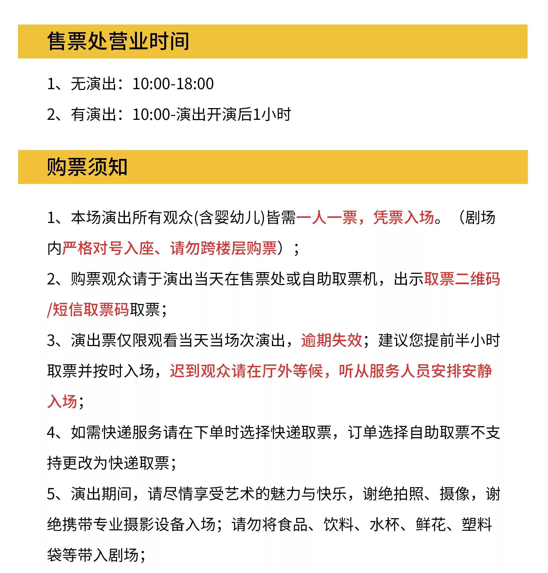 | 座位类型 | 请按门票对应座位,有序对号入座 | 儿童入场提示 | 儿童一律凭票入场 |