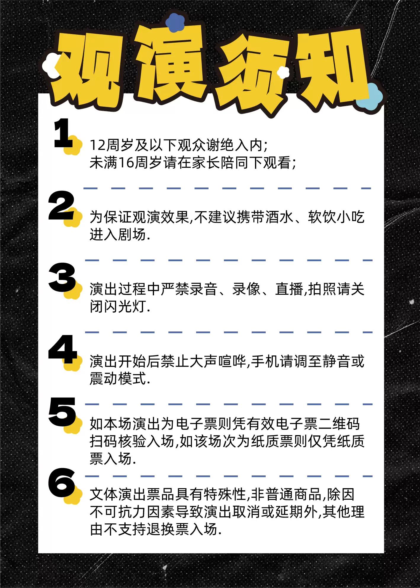| 座位类型 | 请按门票对应座位,有序对号入座 | 儿童入场提示 | 未满12周岁谢绝入场 |