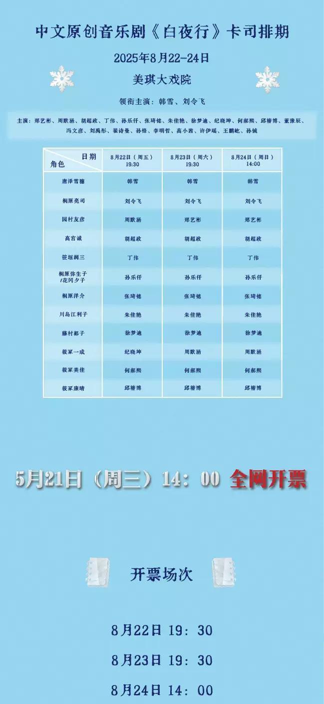 | 禁止携带物品 | 食品、饮料、相机、充电宝、打火机等 | 发票说明 | 如需开具发票,请在演出结束后一个月内联系客服并提供开票信息:票款发票由商家开具,平台服务费发票由票牛开具。 |
