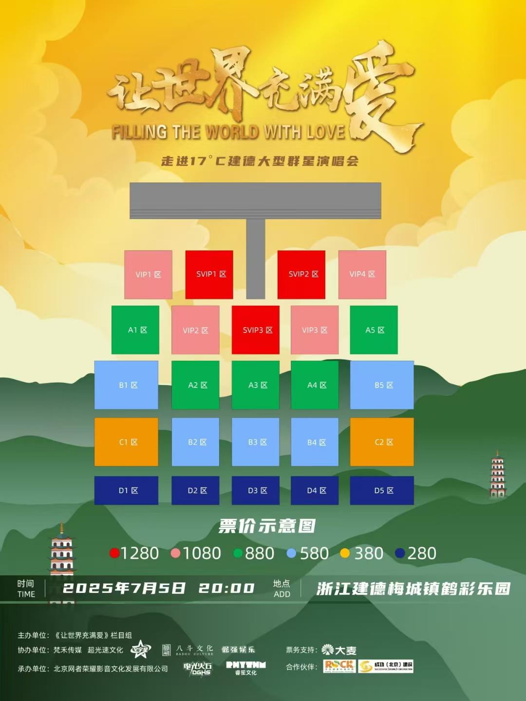 票价:VIP1区1280,VIP2区1080,A区880,B区580,C区380,D区280