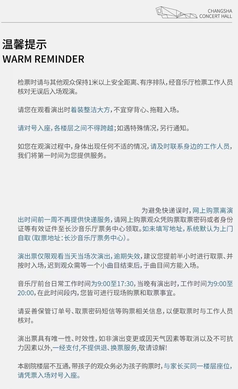 | 座位类型 | 请按门票对应座位,有序对号入座 | 儿童入场提示 | 儿童一律凭票入场 |