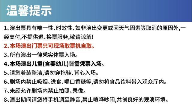 | 座位类型 | 请按门票对应座位,有序对号入座 | 儿童入场提示 | 儿童一律凭票入场 |