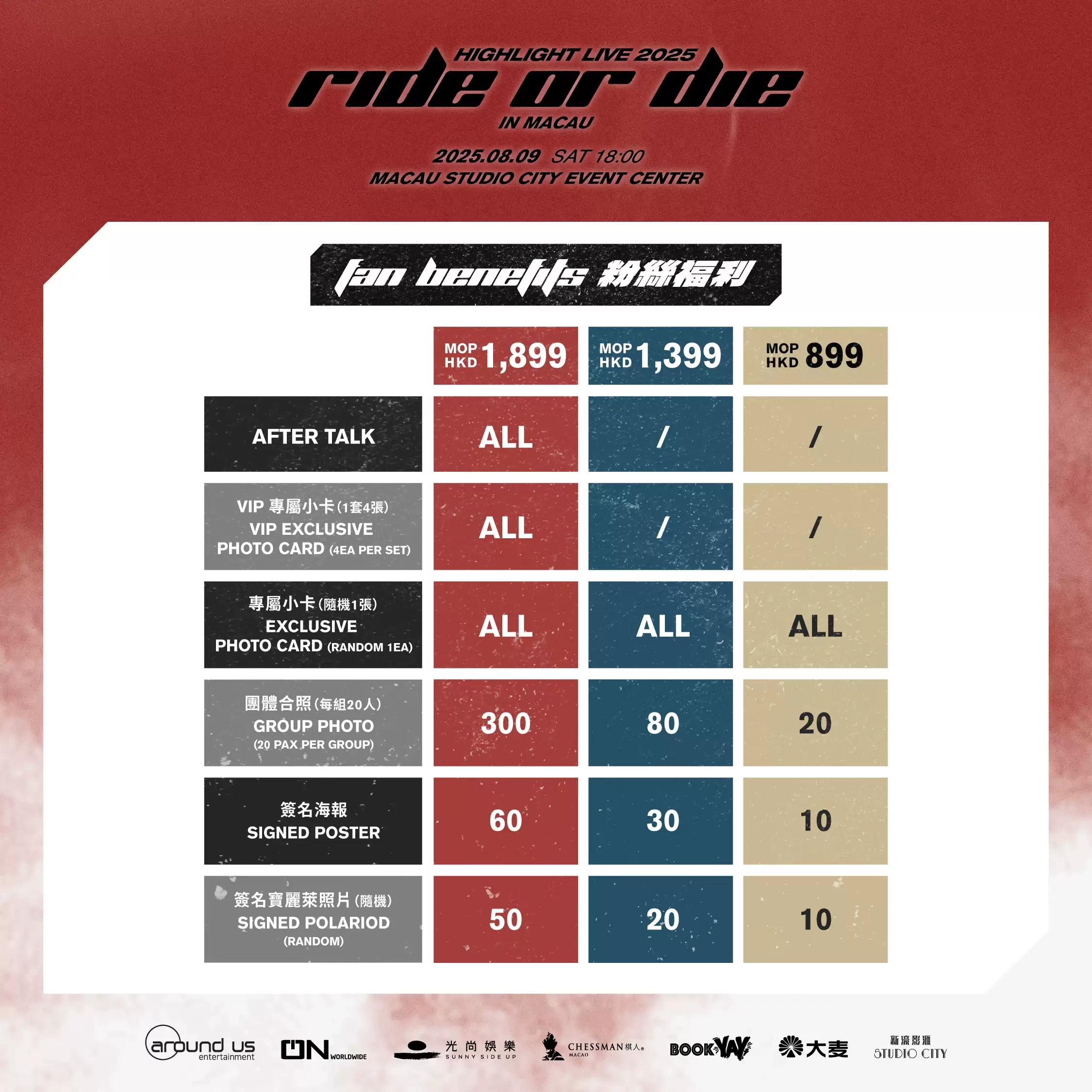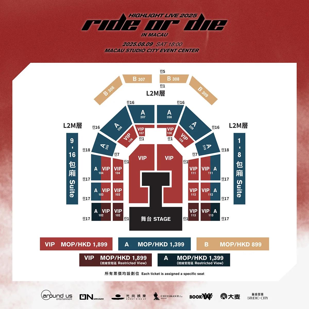 由光尚娱乐主办、棋人娱乐协办《HIGHLIGHT LIVE 2025 [RIDE OR DIE] IN MACAU》将于2025年8月9日(星期六)在澳门新濠影汇综艺馆举行。