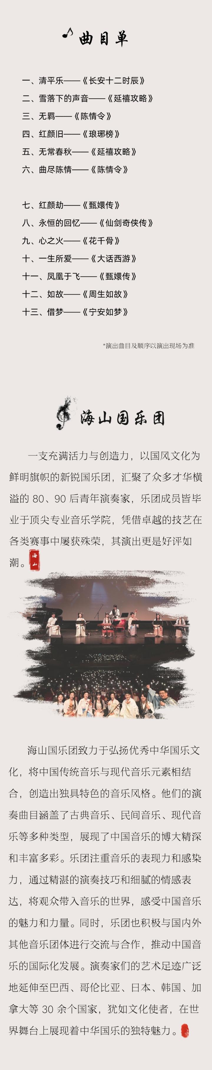 | 禁止携带物品 | 食品、饮料、相机、充电宝、打火机等 | 发票说明 | 如需开具发票,请在演出结束后一个月内联系客服并提供开票信息:票款发票由商家开具,平台服务费发票由票牛开具。 |