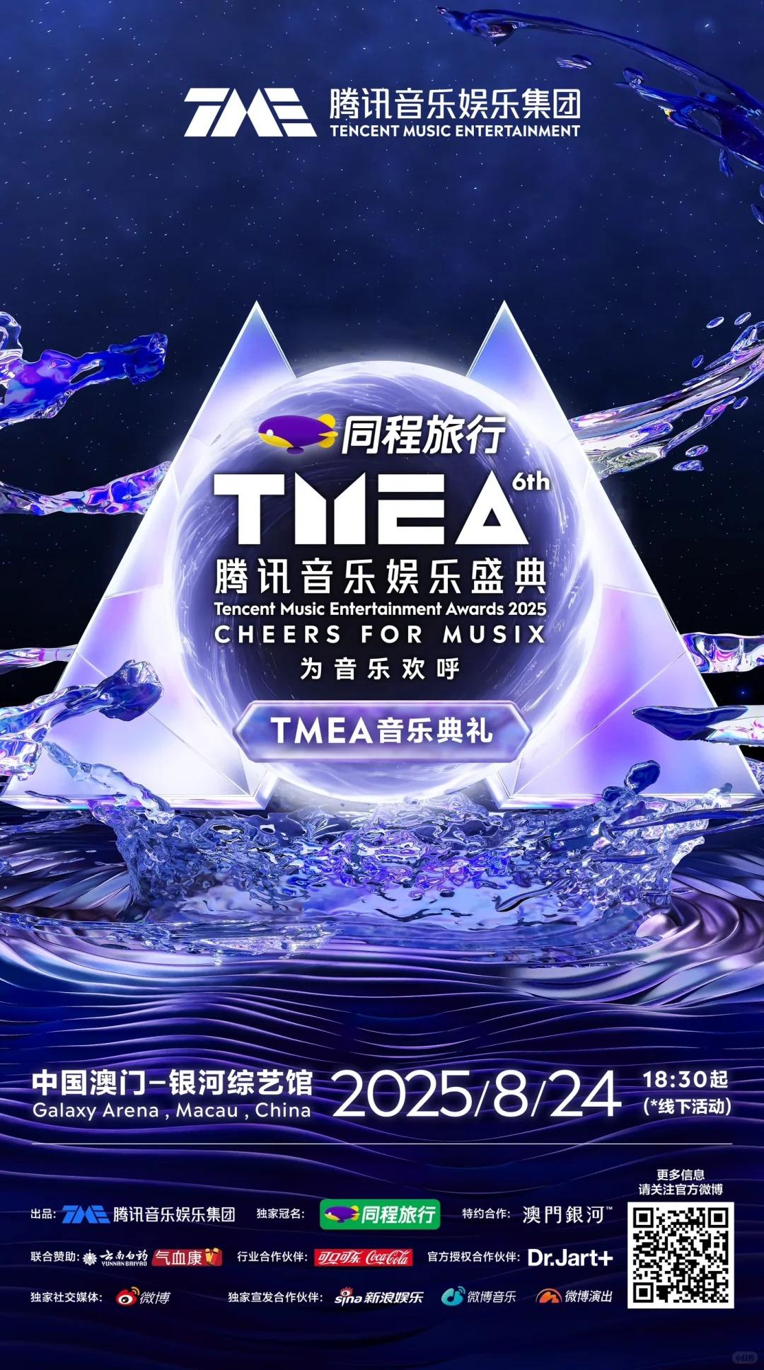2025TMEA#腾讯音乐娱乐盛典 如约而至,8月24日,中国澳门 · 银河综艺馆,TMEA音乐典礼(线下活动)将携手顶尖艺人阵容,用更多元更丰富更沉浸式的音乐舞台,打造极致体验,超额满足你的期待!