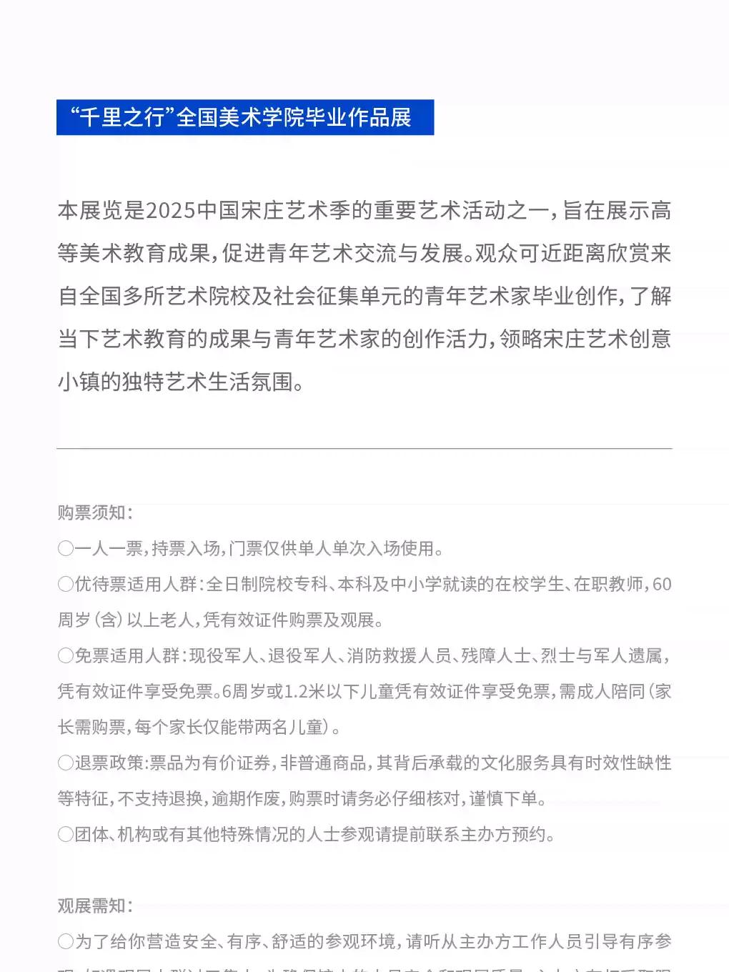 | 温馨提示 | 购买前请您提前规划好行程,做好相应准备,以免影响您的正常观演,感谢您的理解和配合。 若演出受不可抗力影响延期或取消,票牛将对演出票订单按照项目官方通知方案进行处理,其他因观演发生的费用需由您自行承担。 | 电子票 | 本项目支持凭电子票入场。 -请至少提前一天购买,开演前24小时内,票牛会发送取票短信,请按短信提示内容取票。 |