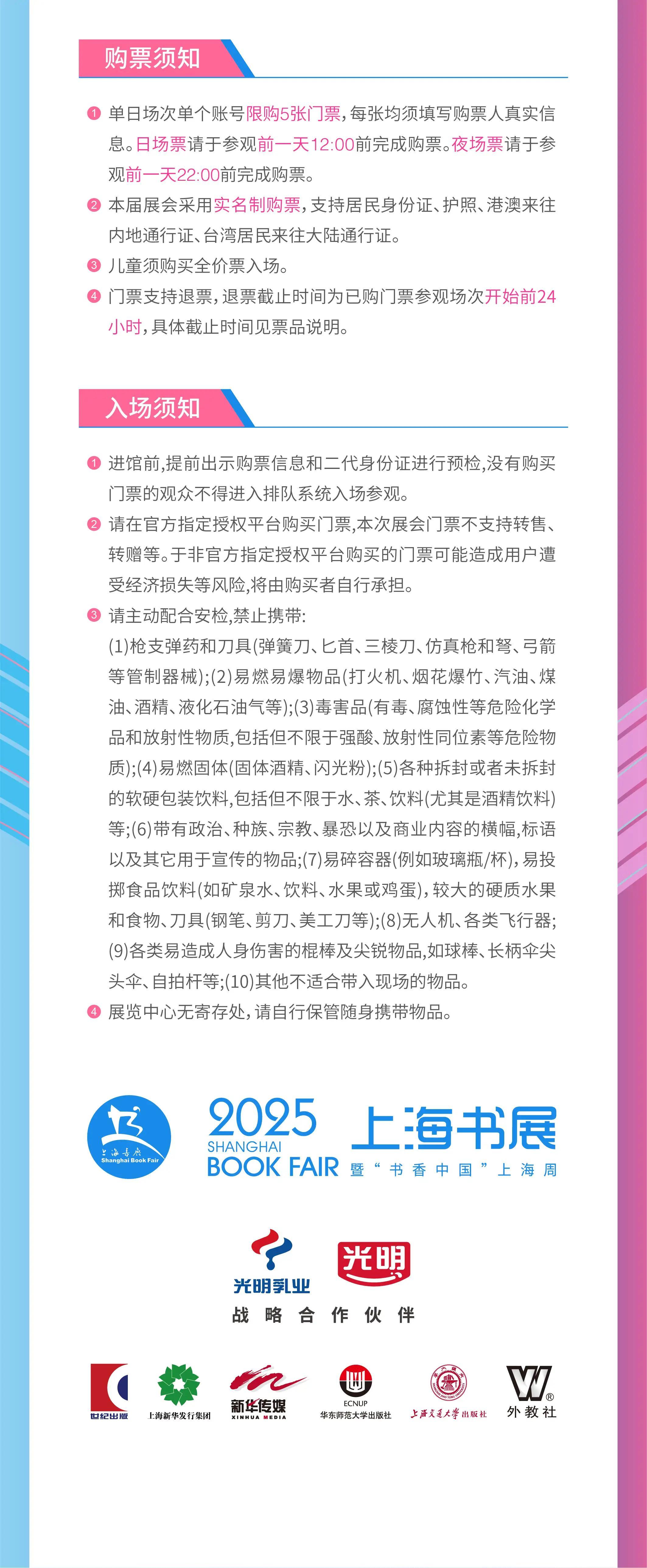 - 由于安保和版权的原因,大多数演出、展览及比赛场所禁止携带食品、饮料、专业摄录设备、打火机等物品,请您注意现场工作人员和广播的提示,予以配合