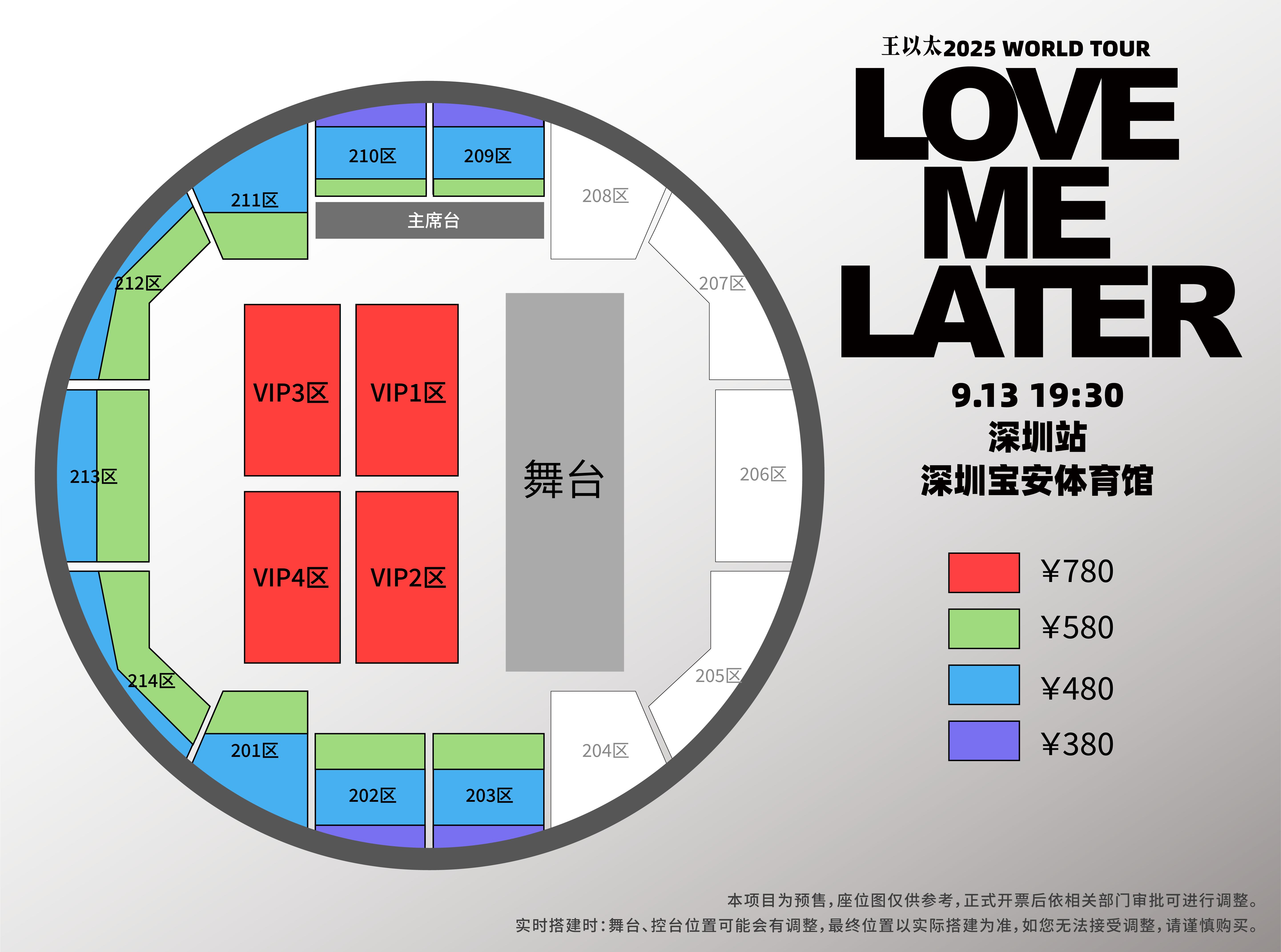 | 限购说明 | 每单限购6张 | 重复购票说明 | 同一位“实名观演人”请勿在多个售票平台重复购票,一位“实名观演人”的身份信息对应同场次的一张门票。 若同一位“实名观演人”被发现存在多个购票平台购买同场次行为,由该行为产生的无效重复订单、退票手续费、过期不可退票、无法入场等所有损失,均由购票人自行承担。 |