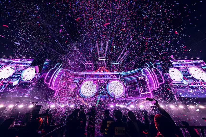 6组LED升降屏幕,配合歌手走位变换升降阵列,强化舞台空间设计感
