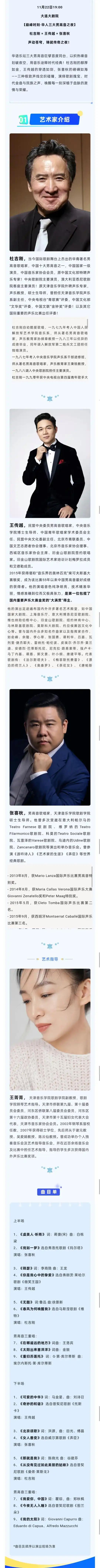 3、准时入场,请对号入座;迟到的观众,请在厅外等候,待幕间休息时安静入场。