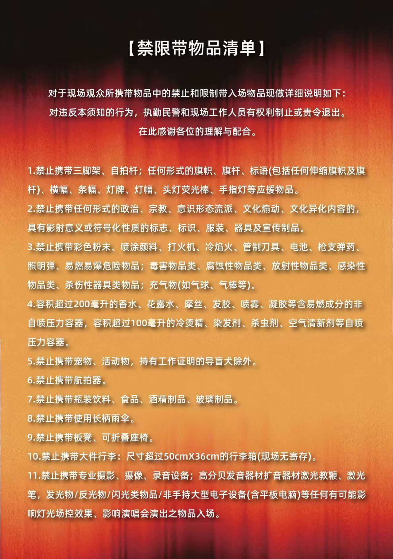 | 发票说明 | 如需开具发票,请在演出结束后一个月内联系客服并提供开票信息:票款发票由商家开具,平台服务费发票由票牛开具。 | 重要提示 | 演出现场气氛热烈,请您务必根据自身身体状况酌情是否购票参与观演,特别是患有心脏类疾病、急性心脑血管疾病、心肌炎、高血压等相关疾病的人群,请您务必遵照医嘱,结合病史及个人身体状况进行观演,观演期间请自行承担身体健康相关责任。 |