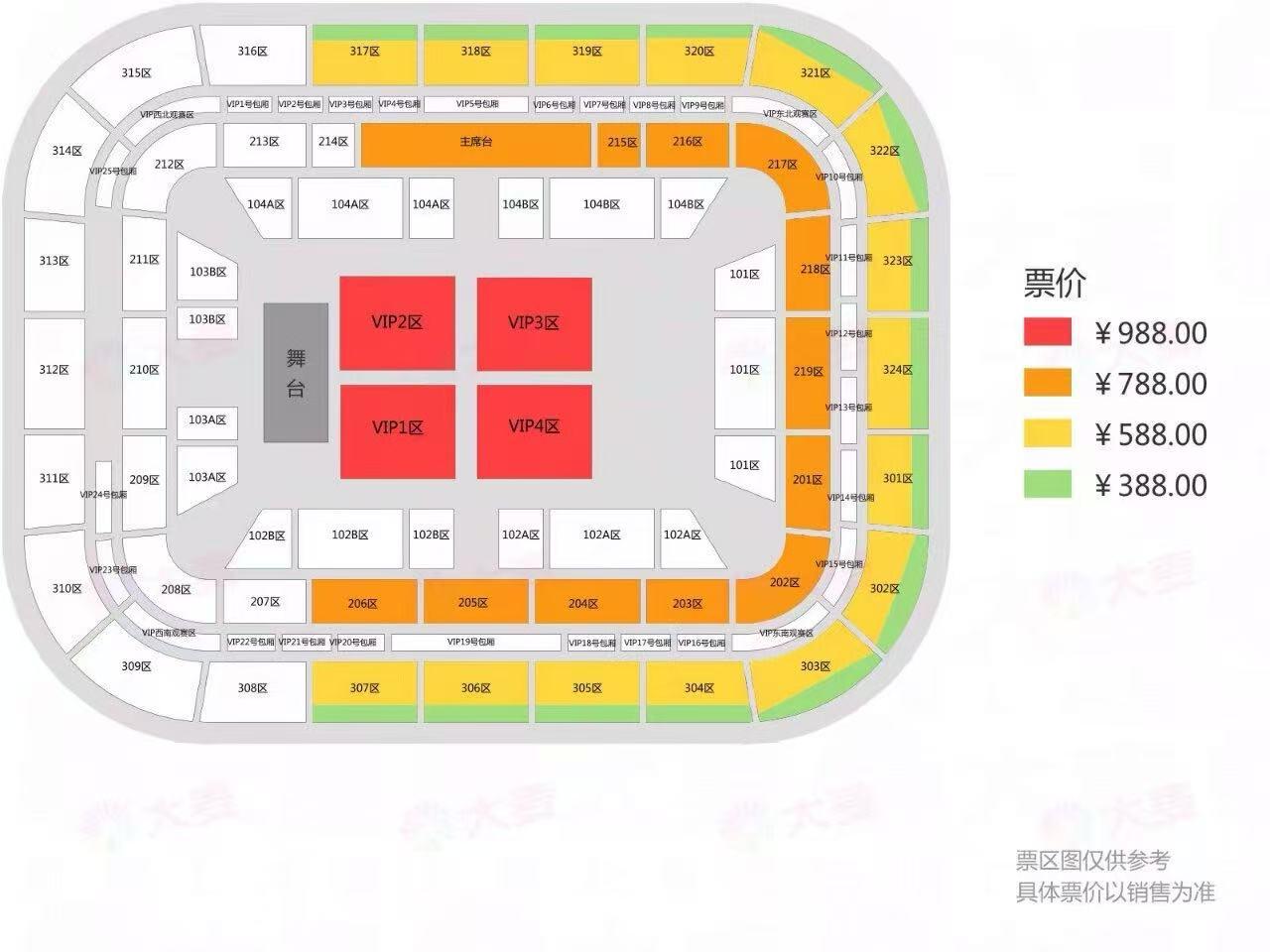 | 服务费说明 | 为了给您提供便利的在线购票服务,票牛为此投入大量的平台技术支持、运营维护支持,并联合平台入驻商家、第三方在线支付服务商、第三方合作商等合作方为您提供服务,基于前述平台成本及合作方服务费用,票牛向您收取不超过票款5%的平台服务费(最高不超过400元)。 票牛收取的平台服务费,主要可能包括如下内容:1.票牛的线上平台和软件系统开发维护成本。2.支付宝、微信等第三方支付服务商收取的支付手续费用。3.物流公司收取的票品寄送费用(如纸质票)。4.客户服务成本以及短信、电话等通道费用。5.为用户提供购票保障服务对应的运营与管理成本。6.其它为完成用户订单必须的相关服务成本、人员成本等。 | 座位类型 | 请按门票对应座位,有序对号入座 |