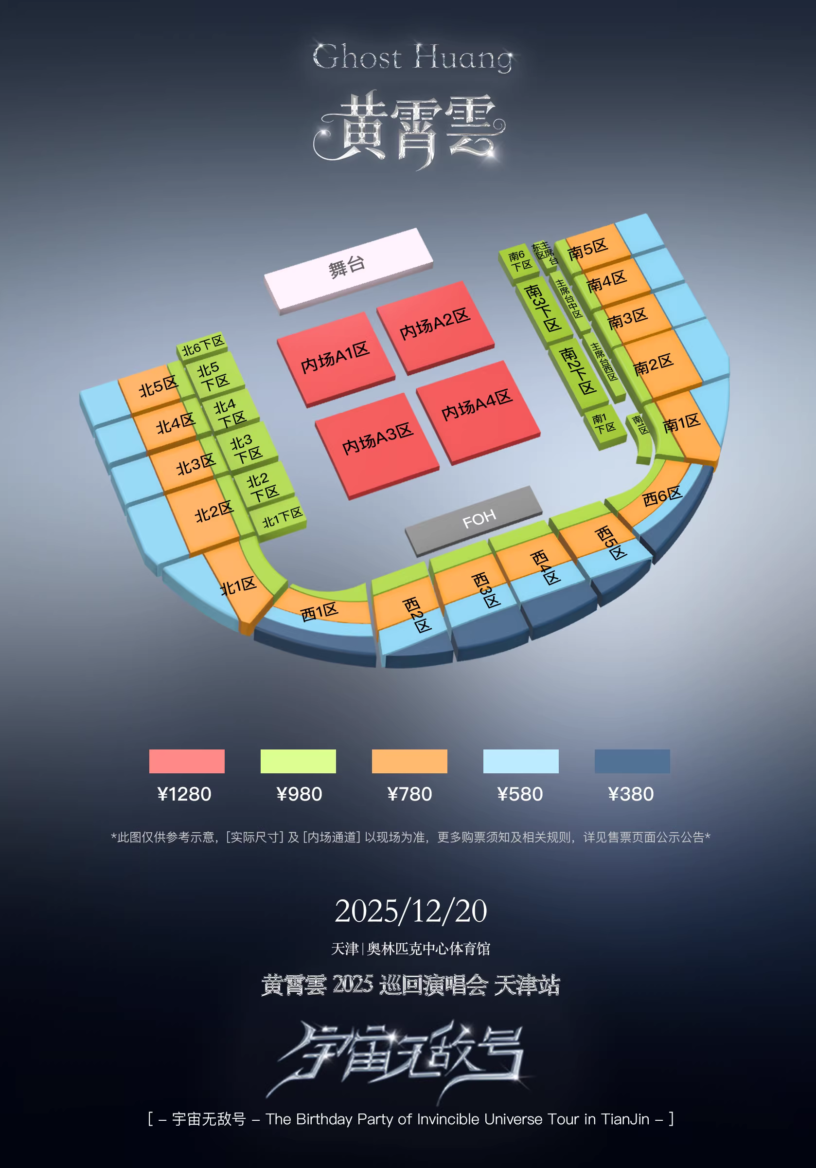 | 发票说明 | 如需开具发票,请在演出结束后一个月内联系客服并提供开票信息:票款发票由商家开具,平台服务费发票由票牛开具。 | 重要提示 | 演出现场气氛热烈,请您务必根据自身身体状况酌情是否购票参与观演,特别是患有心脏类疾病、急性心脑血管疾病、心肌炎、高血压等相关疾病的人群,请您务必遵照医嘱,结合病史及个人身体状况进行观演,观演期间请自行承担身体健康相关责任。 |