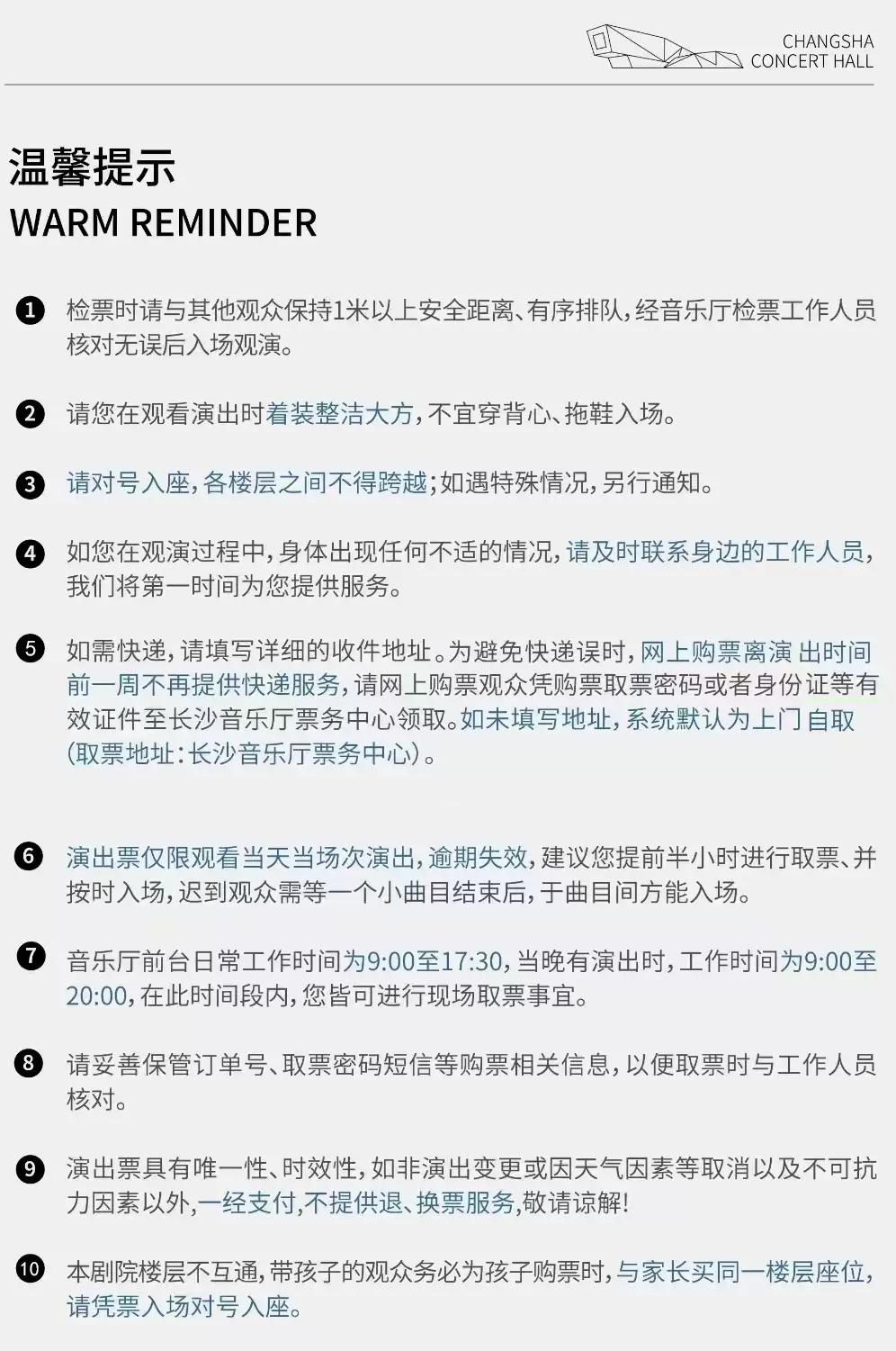 | 座位类型 | 请按门票对应座位,有序对号入座 | 儿童入场提示 | 1米以下谢绝入场,1米以上凭成人票入场 |