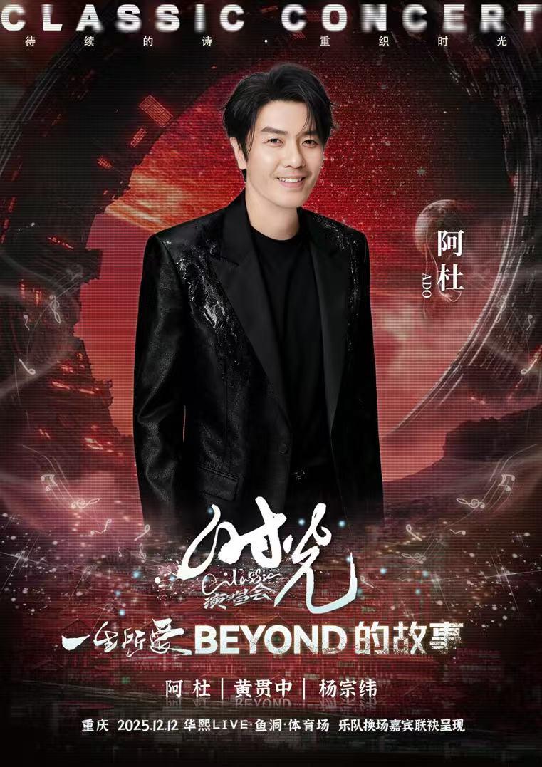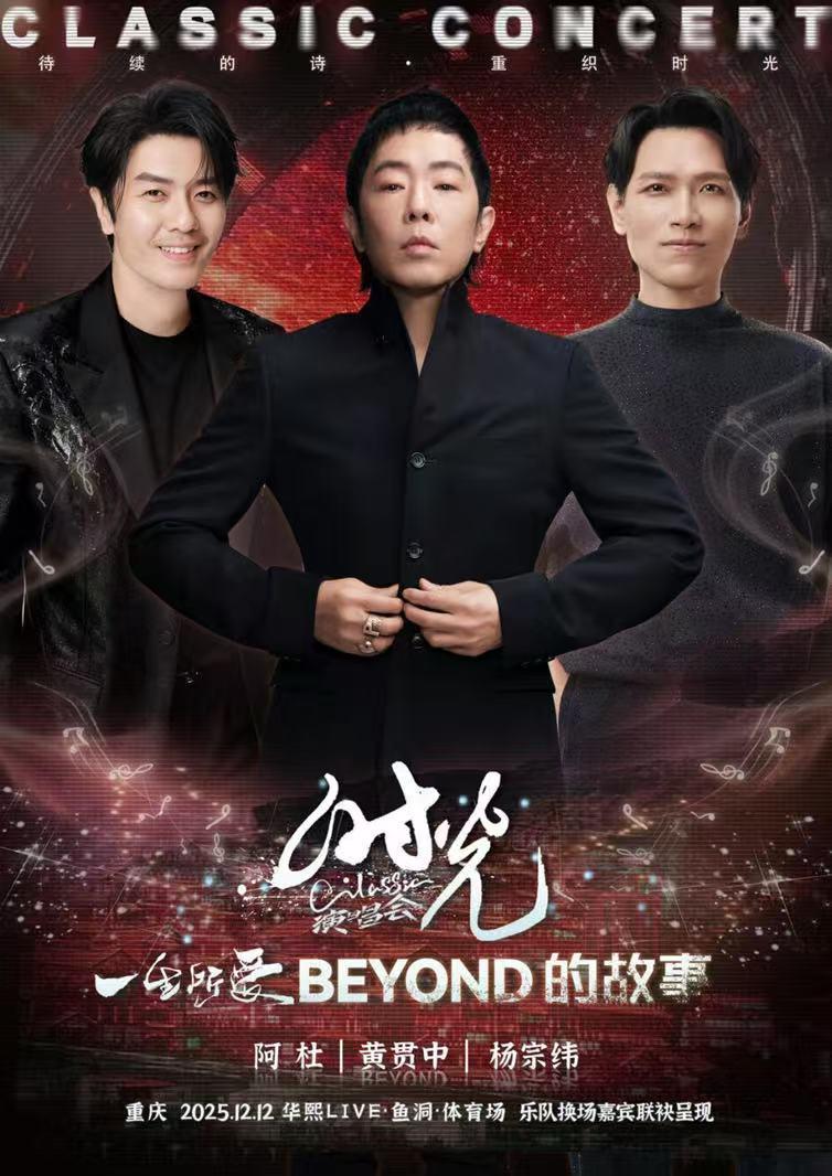 2025“时光Classic演唱会·重庆站”将于12月12日登陆山城,于华熙LIVE·鱼洞·体育场炽热开唱。杨宗纬、黄贯中、阿杜,三位时代标志性歌手联袂登台。从 Beyond“为理想呐喊” 到阿杜“为生存嘶吼” ,再到 杨宗纬的“为内心哭泣”。而今天的黄贯中从“昂扬的摇滚” 到 “苦涩的抒情” ,再回归 “灵魂的呐喊”。共同唤醒时光深处的集体记忆,为初冬的重庆注入直击心灵的温暖力量。