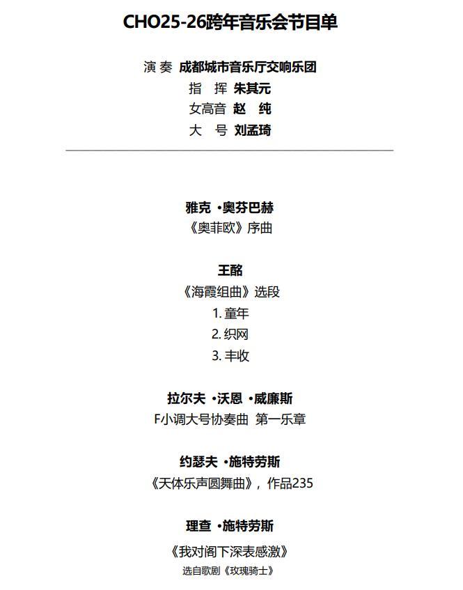 踏上厅团合一的新征程,成都城市音乐厅交响乐团将充分利用国际一流的演出平台,通过全新的运营管理模式,深入推进产、学、研一体化。乐团将不忘初心,牢记使命,坚持以艺术精品奉献人民、服务社会,为建设社会主义文化强国、助力成都打造国际音乐之都贡献更大的力量!
