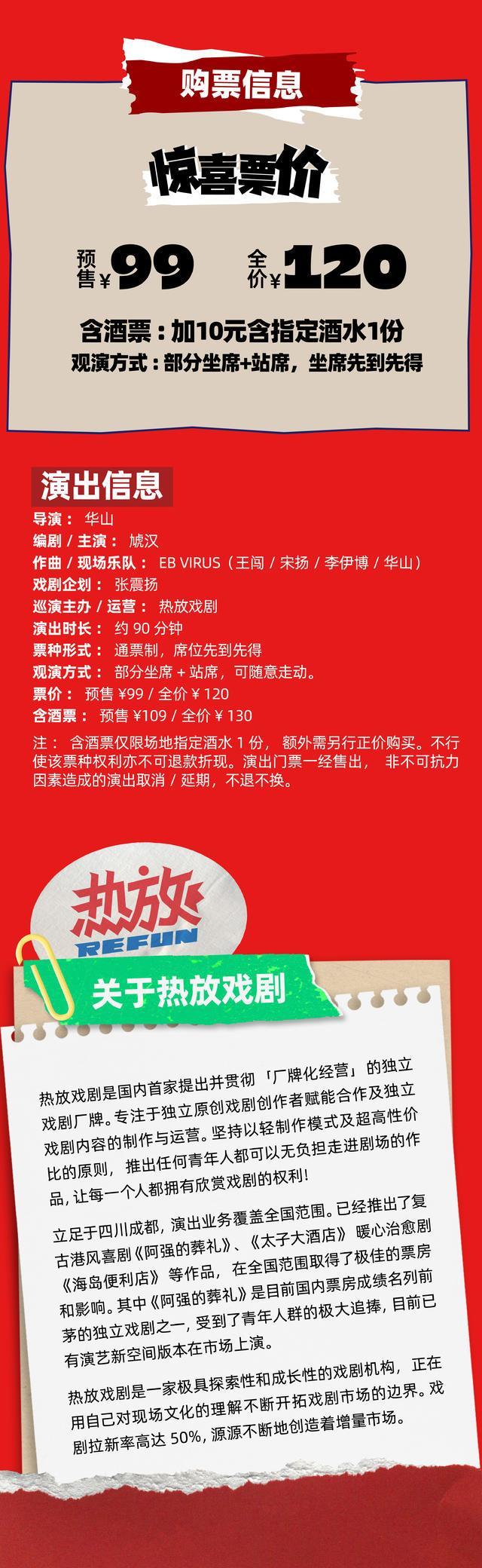 | 重要提示 | 演出现场气氛热烈,请您务必根据自身身体状况酌情是否购票参与观演,特别是患有心脏类疾病、急性心脑血管疾病、心肌炎、高血压等相关疾病的人群,请您务必遵照医嘱,结合病史及个人身体状况进行观演,观演期间请自行承担身体健康相关责任。 | 温馨提示 | 购买前请您提前规划好行程,做好相应准备,以免影响您的正常观演,感谢您的理解和配合。 若演出受不可抗力影响延期或取消,票牛将对演出票订单按照项目官方通知方案进行处理,其他因观演发生的费用需由您自行承担。 |