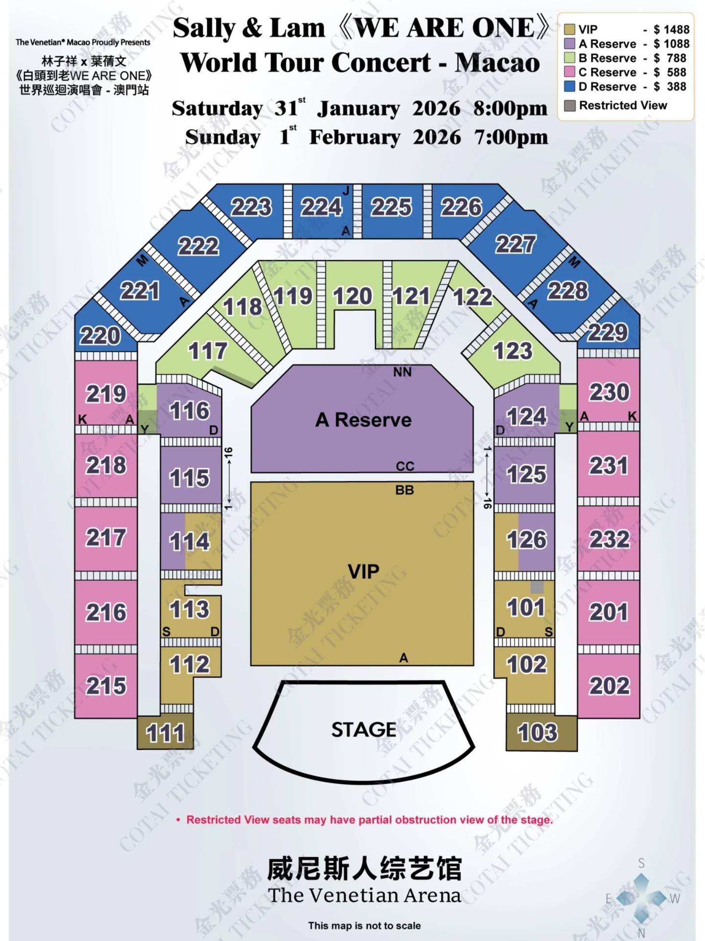 *座位可能会出现单数或非连位之安排,购票人士须接受获分配之座位安排,不得异议。