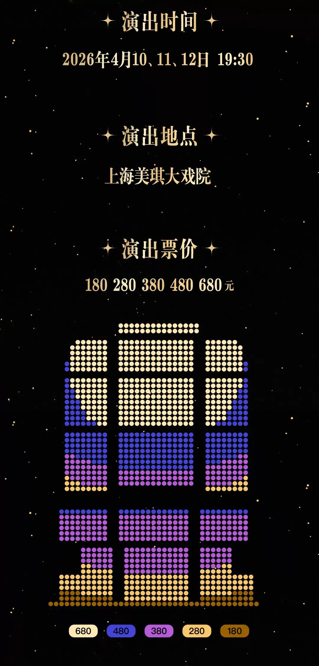 | 座位类型 | 请按门票对应座位,有序对号入座 | 儿童入场提示 | 1.2米以上凭票入场,1.2米以下谢绝入场 |