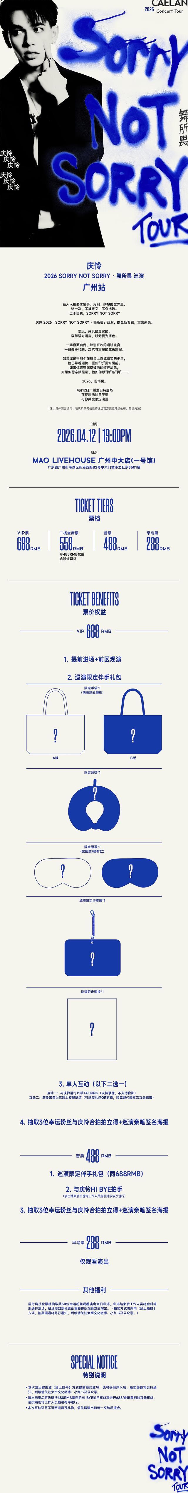 | 发票说明 | 如需开具发票,请在演出结束后一个月内联系客服并提供开票信息:票款发票由商家开具,平台服务费发票由票牛开具。 | 重要提示 | 演出现场气氛热烈,请您务必根据自身身体状况酌情是否购票参与观演,特别是患有心脏类疾病、急性心脑血管疾病、心肌炎、高血压等相关疾病的人群,请您务必遵照医嘱,结合病史及个人身体状况进行观演,观演期间请自行承担身体健康相关责任。 |