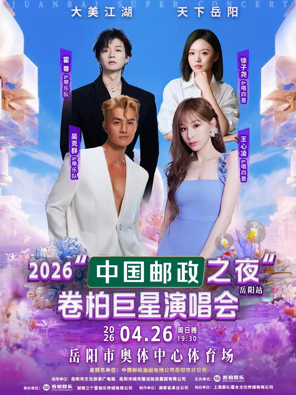 2026“中国邮政之夜”卷柏巨星演唱会,将于2026年4月26日19:30,