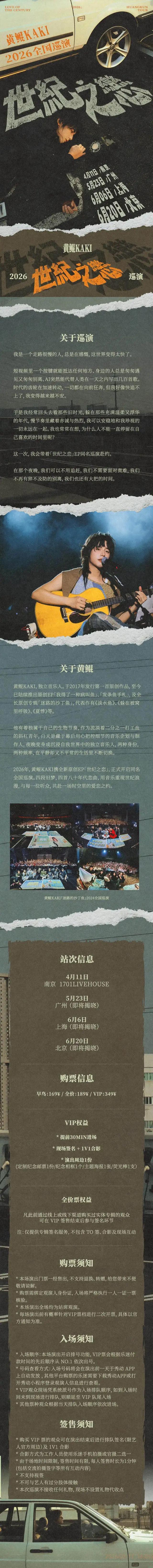 [南京]黄鲲KAKI2026「世纪之恋」巡演