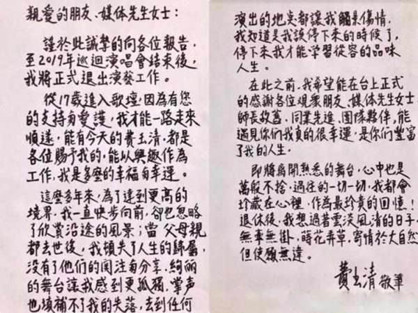 2018年9月底费玉清以亲笔信的方式,宣布将于2019年巡回演唱会结束后正式隐退,为45年来的演艺工作画上句号。众粉丝纷纷表示心痛。本轮巡演将是费玉清zui后一次站在舞台上献唱。